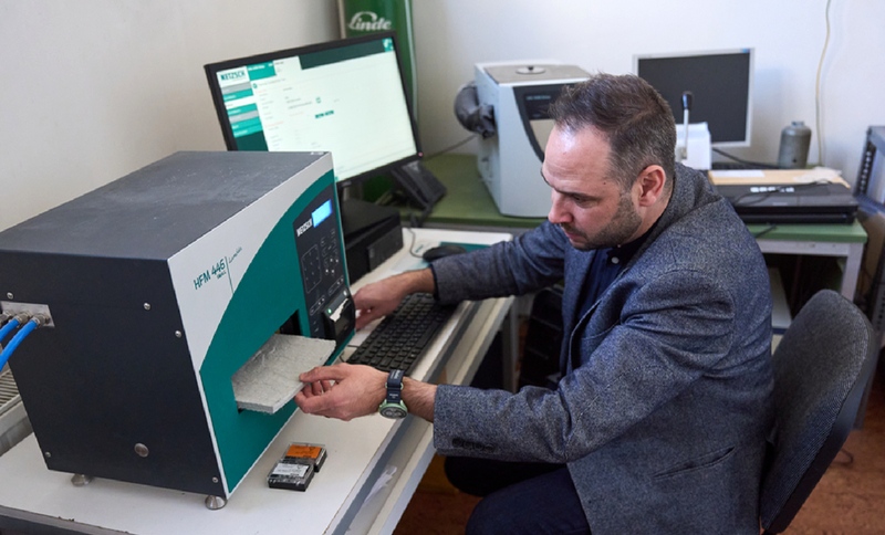 Lakatos Ákos, a DE MK professzora és Szabó Ákos MSc-hallgató a kar Épületfizika laboratóriumában csaknem egy évig különböző szálas szilícium-dioxid-alapú maganyagokat tartalmazó hőszigetelő lapokkal dolgozott. Vákuumban saját fejlesztésű szigetelő paneleket készítettek, majd azok hővezető képességét vizsgálták. A kísérletek közben bekövetkezett változásokról mikroszkópos felvételeket is rögzítettek.